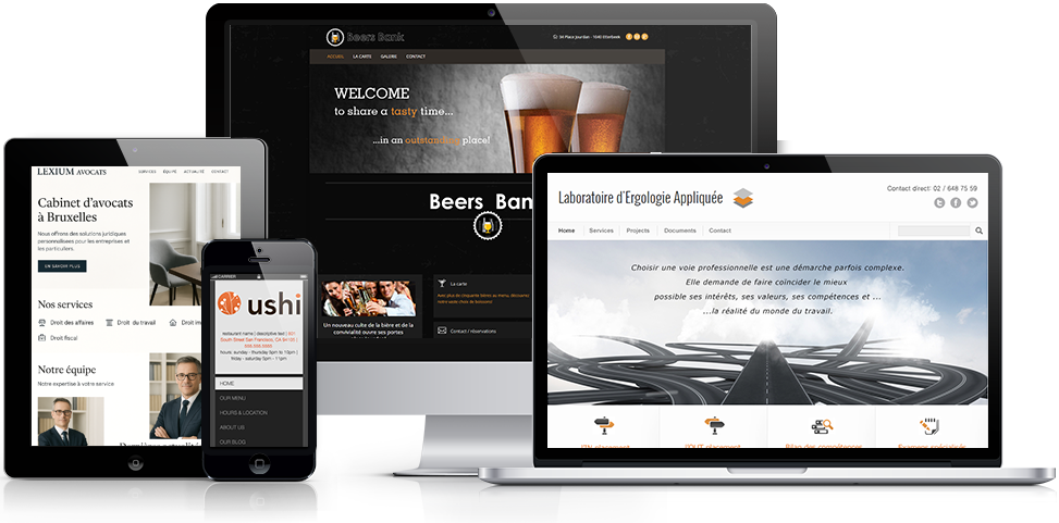 Une sélection de sites réalisés, en évolution. Toujours en partant du contexte et des besoins du client. Hiérarchie, structure, design, code.